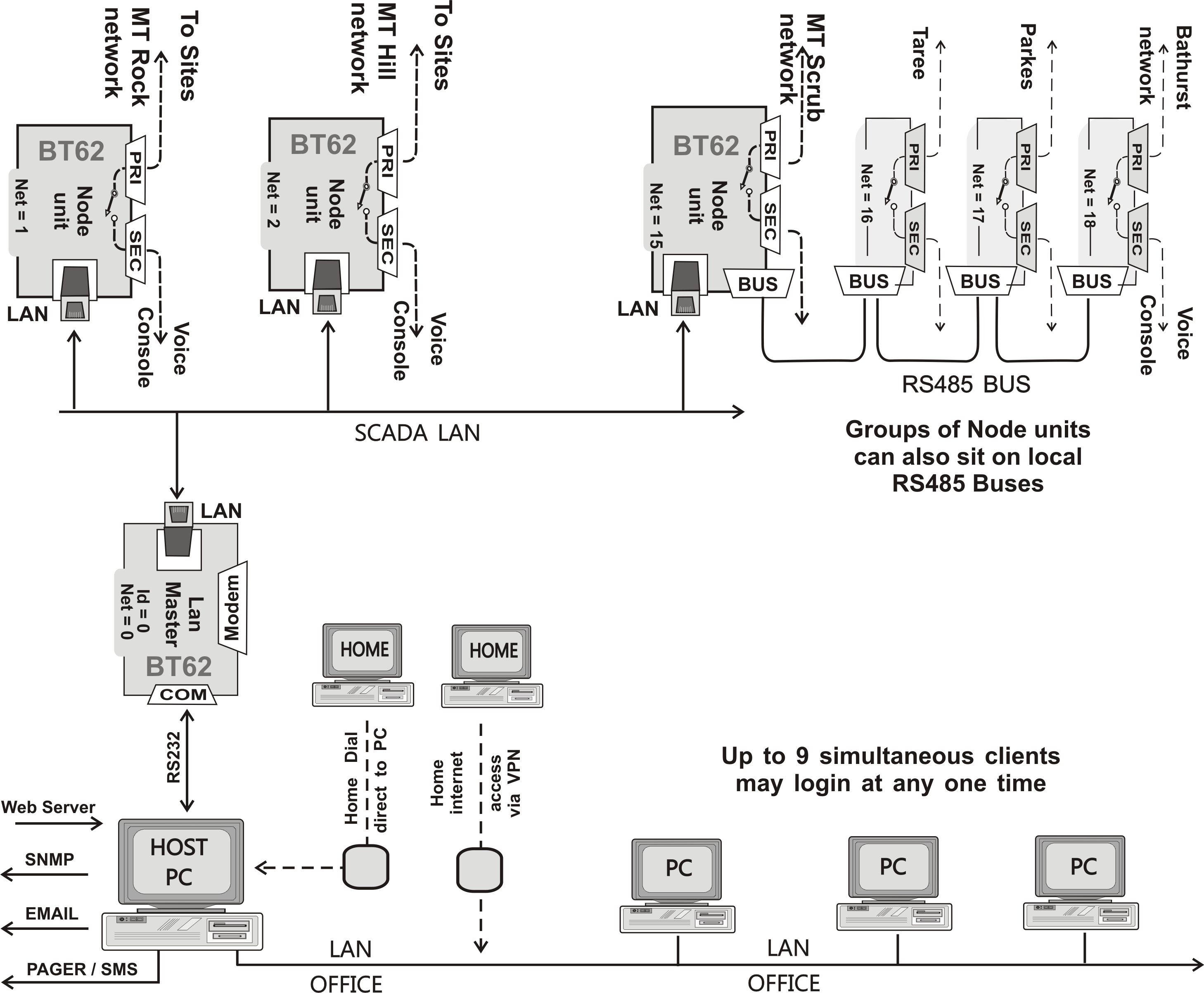 All versions of the BT-62 unit may be fitted with a LAN card to transmit alarms over the company WAN.