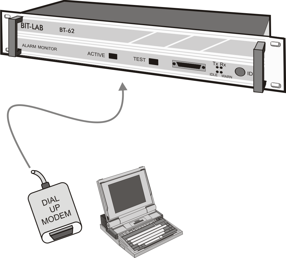 The BT-62 unit can also be supplied as a low cost dial-in only unit. In this case the FFSK and audio circuits are not fitted and the unit communicates only via dial-up Telecom lines.